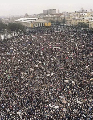«Я отмежевываюсь от позиции и политики президента, выступаю за его немедленную отставку, передачу власти коллективному органу – Совету Федерации. Я верю в Россию. Я свой выбор сделал. Я с этой дороги не сверну», – заявил Ельцин в телеинтервью. Его слова придали решительности «демократической» оппозиции. 10 марта около 300 тыс. человек собрались на Манежной площади в Москве, выступая в поддержку государственного суверенитета России и прибалтийских республик, а также требуя отставки Горбачева. Это был самый массовый оппозиционный митинг перестроечного времени.
