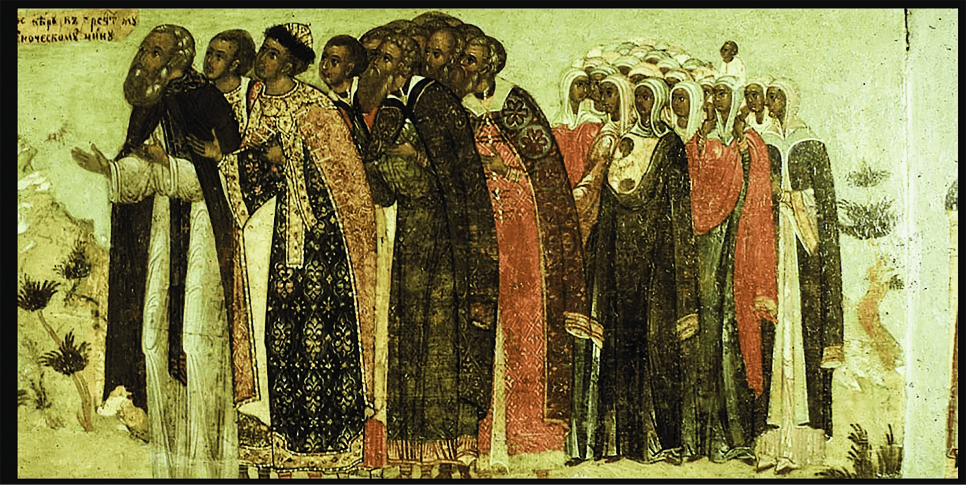 Икона Тихвинской Богоматери из Благовещенского собора Московского Кремля. Клеймо. «Предстоящие в молении чудотворному образу Богоматери Тихвинской». XVI век