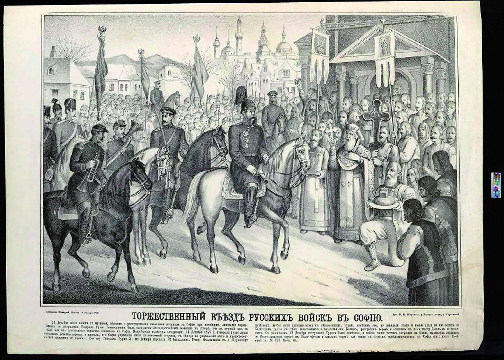 Торжественный въезд русских войск в Софию. Литография П.Н. Шарапова. 1878 год
