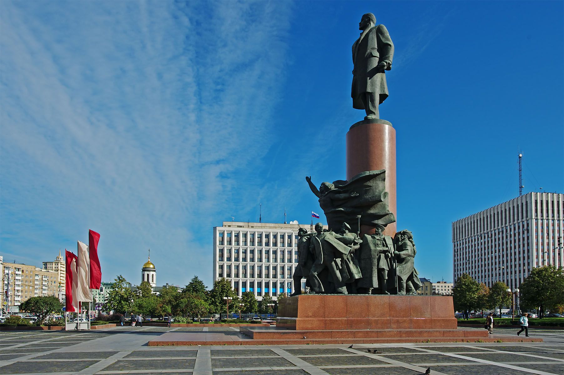 Но пока остаётся Мавзолей Ленина, стоят многочисленные памятники вождю мирового пролетариата, один из последних открыли на Октябрьской площади в 1985 году Михаил Горбачёв и Виктор Гришин (ныне площадь называется Калужской).
